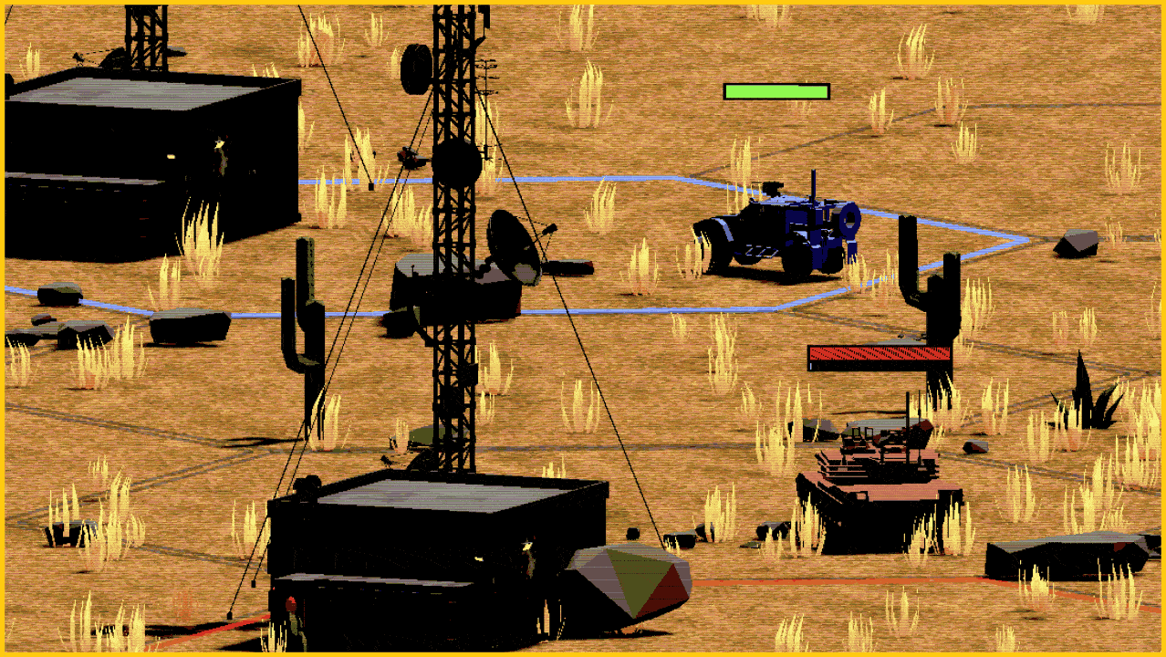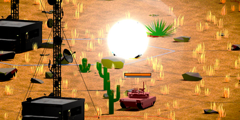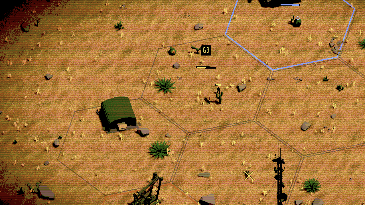 Real-time strategy game set in a desert theater. Deploy grunts, scouts, tanks, and artillery across a hex-grid battlefield - capture territory, seize oil, and dismantle the enemy HQ before they take over yours.